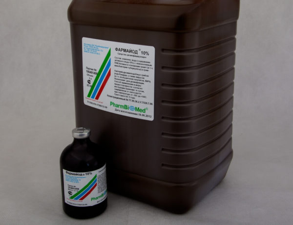 | Фармайод | Йод | Дезинфекция почвы и семян, лечение вирусной крапчатой мозаики огурцов | Дезинфекция почвы — 3—5 литров 2% раствора на 1 м3. Обработка семян — 0,05%-й раствор. Лечение — 0,03%-й раствор. | 5 | 2—3 недели | 4—5 недель |