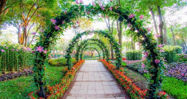 Украшать арки можно красиво цветущими растениями и растениями с пышной зеленью и декоративными плодами. Плети вьющихся растений достигают 3-4 метров. С помощью арок, пергол им придают желаемую форму, украшая сад красивыми композициями.